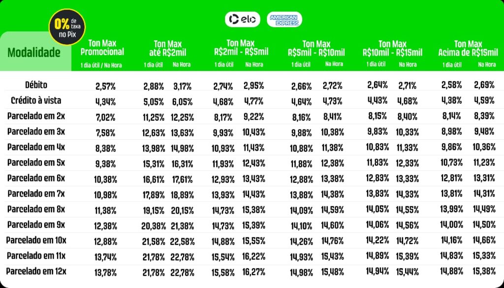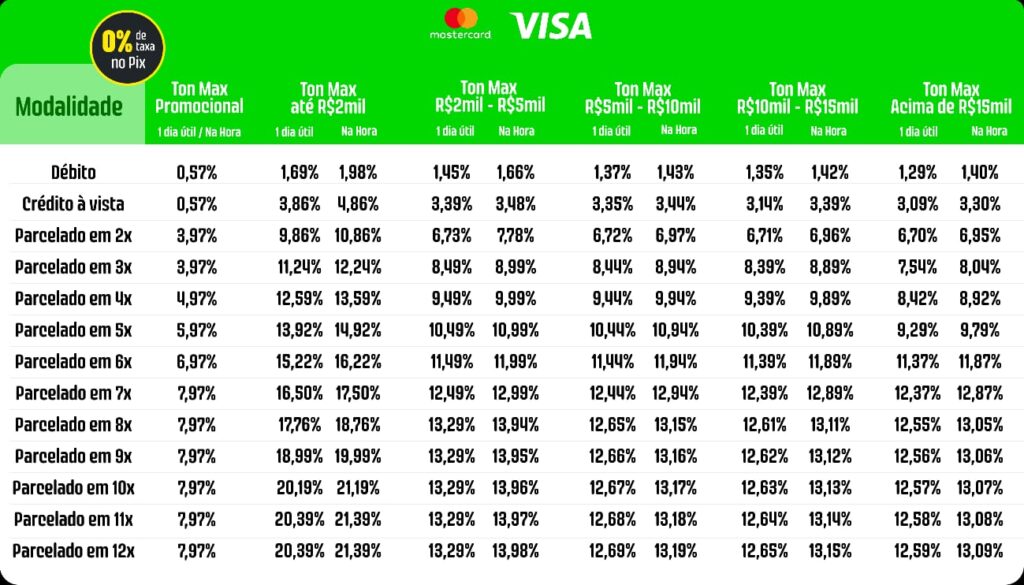 Já nos planos Ton Básico e MegaTon não existe mínimo de vendas. Confira mais detalhes no regulamento dos planos.